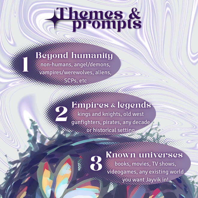 You can share your art on Twitter, Bluesky and AO3 using the hashtag #AUJayvikWeek. We will repost it with our account or add your work to our collection.We have no issue with participants sharing their work outside those platforms, though!