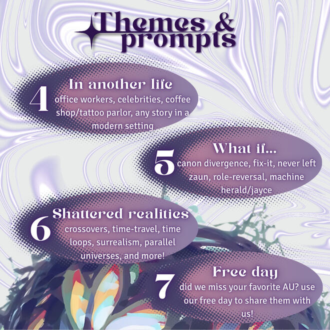 In All Timelines is a 7-day fan event dedicated to the exploration of Jayce and Viktor's relationship in every universe. This event is expected to take place during December 14th - 20th, 2025.Instead of limiting the creative ability of our beloved fandom, we wish to inspire through the interpretation of the themes picked for each day. We encourage every participant to create and share content in any format they deem possible. Fanfiction, digital or traditional art, graphics, edits or videos, meta/analysis/headcanons, moodboards, or any thought that our prompts spark is welcome.Sharing WIPs is also appreciated. We hope our tag is filled of your lovely work, whether it's incomplete or finished.Everyone interested in contributing can do so regardless of experience. So if you post your work in Twitter or Bluesky, please use the tag #AUJayvikWeek so we can share it and enjoy it together!In case you participate with fanfiction, the AO3 collection will welcome your work during the week, and will be open for two weeks after the event ends.